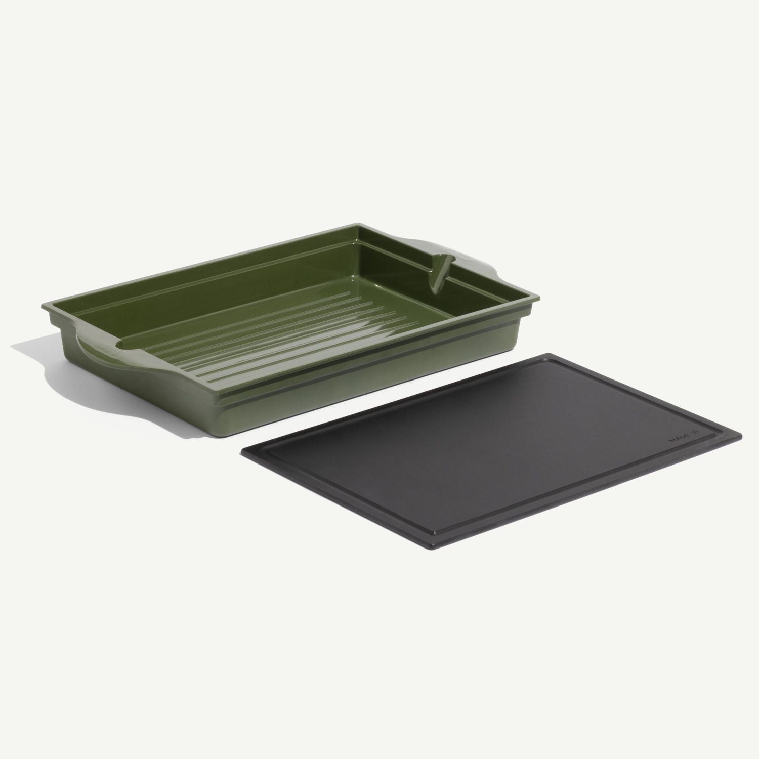 A clean, compact, all-in-one prep and serving tray built to simplify outdoor cooking—from marinating to slicing to serving.